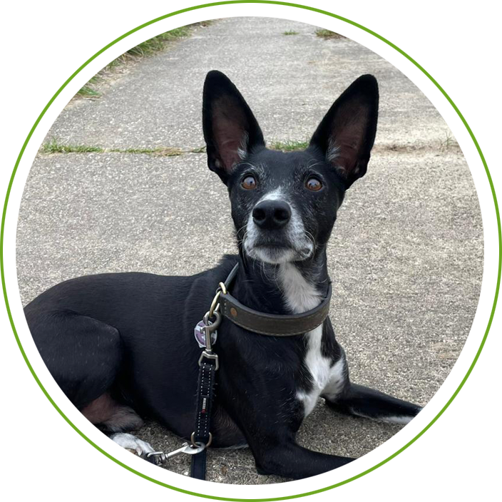 Kuro kam mit zwei Jahren zu mir, nachdem seine Familie ihn schweren Herzens abgeben musste. Er ist ein Podenco-Mix aus Spanien – im Haus ruhig, draußen selbstständig und voller Energie.